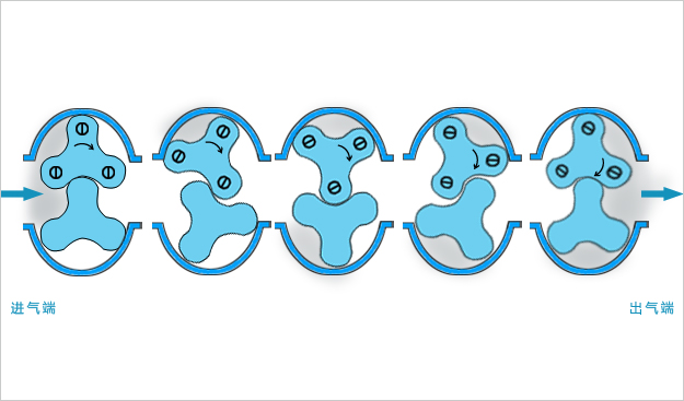 羅茨風機的具體的工作原理流程請看下圖: